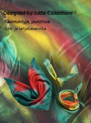 Yrityksemme on toiminut alalla lähes 20v. Suunnittelemme ja maalaamme korkealaatuisesta silkistä yksilöllisiä designhuiveja, solmioita ja kortteja. Lisäksi valikoimassamme on käsinmaalattuja villa- ja puuvillahuiveja sekä kankaanpainantatuotteita. Suunnittelussa otamme huomioon myös asiakkaan väri- ja laatutoivomuksen. Tuotteemme sopivat erinomaisesti liike- ja lahjatavaroiksi.