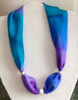 Käsinmaalatut silkkihuivit (45x45cm), joihin pujotettu erilaisia helmiä.